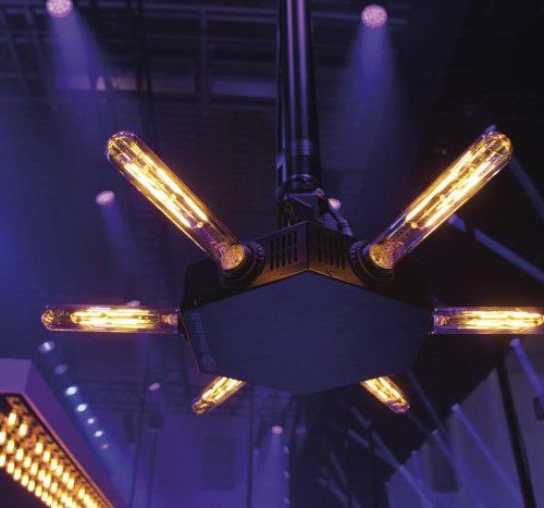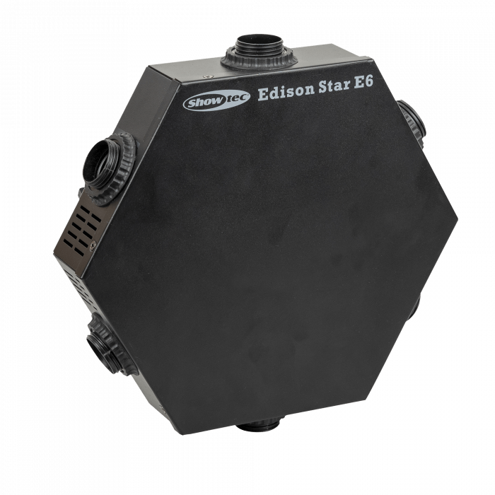 The Edison Star E6 features six E27 lamp sockets arranged in a star / hexagon-style layout, making it perfect for feature lighting, stage backdrops, catwalks, set dressing, and atmospheric event design. It supports manual and DMX control, with built-in programs, sound-active mode, and dimming from 0–100%, giving you flexible control whether you’re using it as a static practical or part of a larger lighting rig. It also includes power and DMX in/out, making it easy to integrate into temporary event and production setups.
